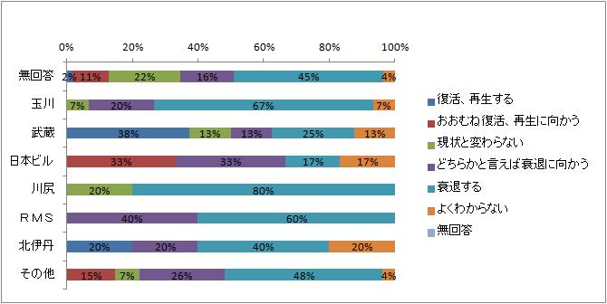 「復活、再生する」「おおむね復活、再生に向かう」を合わせても13%で、全体の68%は否定的